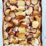 Sacamos la masa del horno y rellenamos la base con el skyr y ponemos la fruta por encima. Volvemos a meter al horno 10-15 minutos o hasta que la fruta se ablande y el hojaldre coja color.