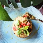 Añadimos 350ml de agua hirviendo a la pasta de cous cous de Tomate y Albahaca junto con 2 cucharadas generosas de Aceite de Oliva Virgen Extra y dejamos reposar tapado unos 3-5 minutos. (* Si fuera pasta de Cous Cous normal deberíamos de añadirle también sal y albahaca seca, o especias al gusto)